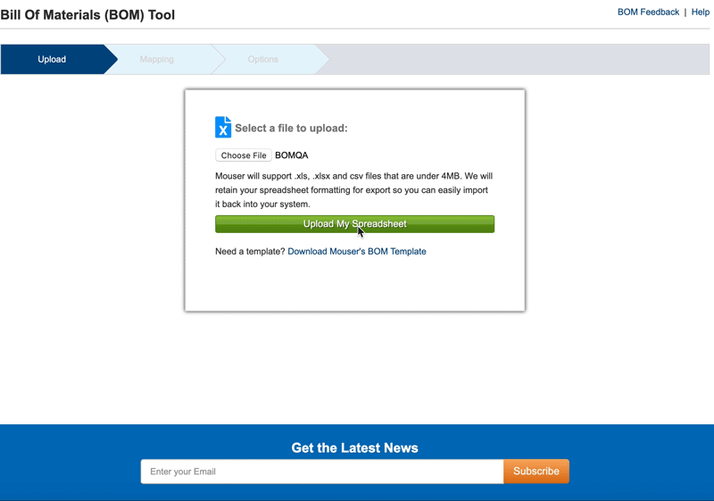 A Ferramenta BOM da Mouser permite importar seus dados de duas maneiras:
